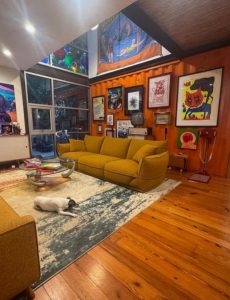 يقول ديبيازا: “أردت أن أخلق منزلًا ليس مجرد منزل بل تحفة معمارية”. تتجلى هذه الروح في كل زاوية من الزوايا المكان، وتتمثل في المساحة الزجاجة المطلة على غرفة المعيشة، وحتى الديكورات الغنية التي وصفها إعلان المنزل على “ديكور بي إن بي” بأنها “مزيج مذهل من المفروشات والتقنيات والفنون الفريدة والدافئة والملونة والمبتكرة”.